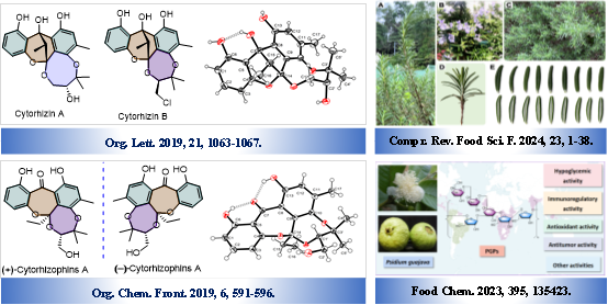团队在Compr. Rev. Food Sci. F.、ACS Cat.、Chin. Chem. Lett.、Nature Communications、Acta Pharm Sin B、Eur J Med Chem.、Food Chem.、Food Funct.等国际权威期刊上发表高水平学术论文多篇,获得授权国家发明专利10余项,在研国家自然科学基金、省市自然科学基金6项。